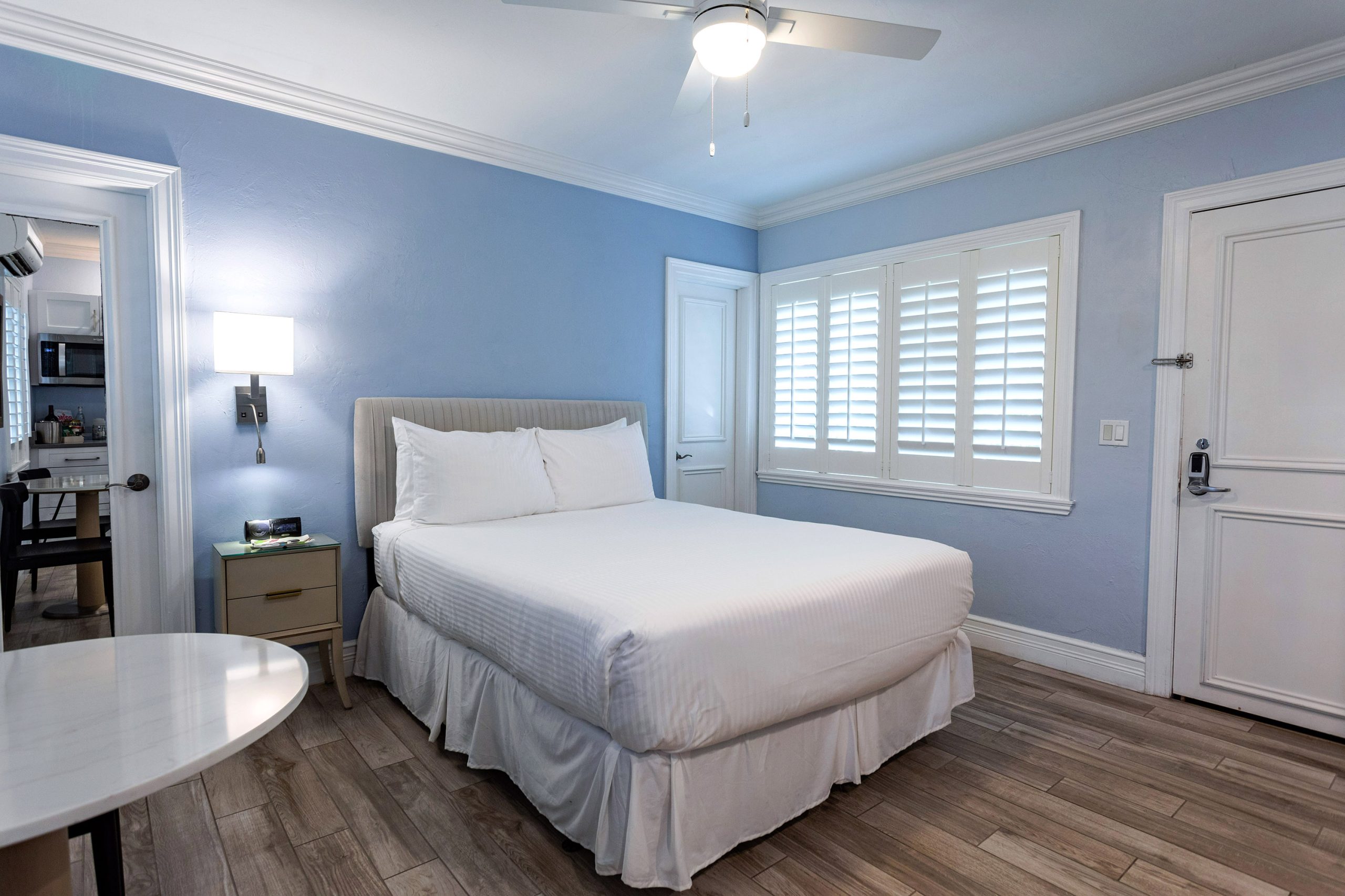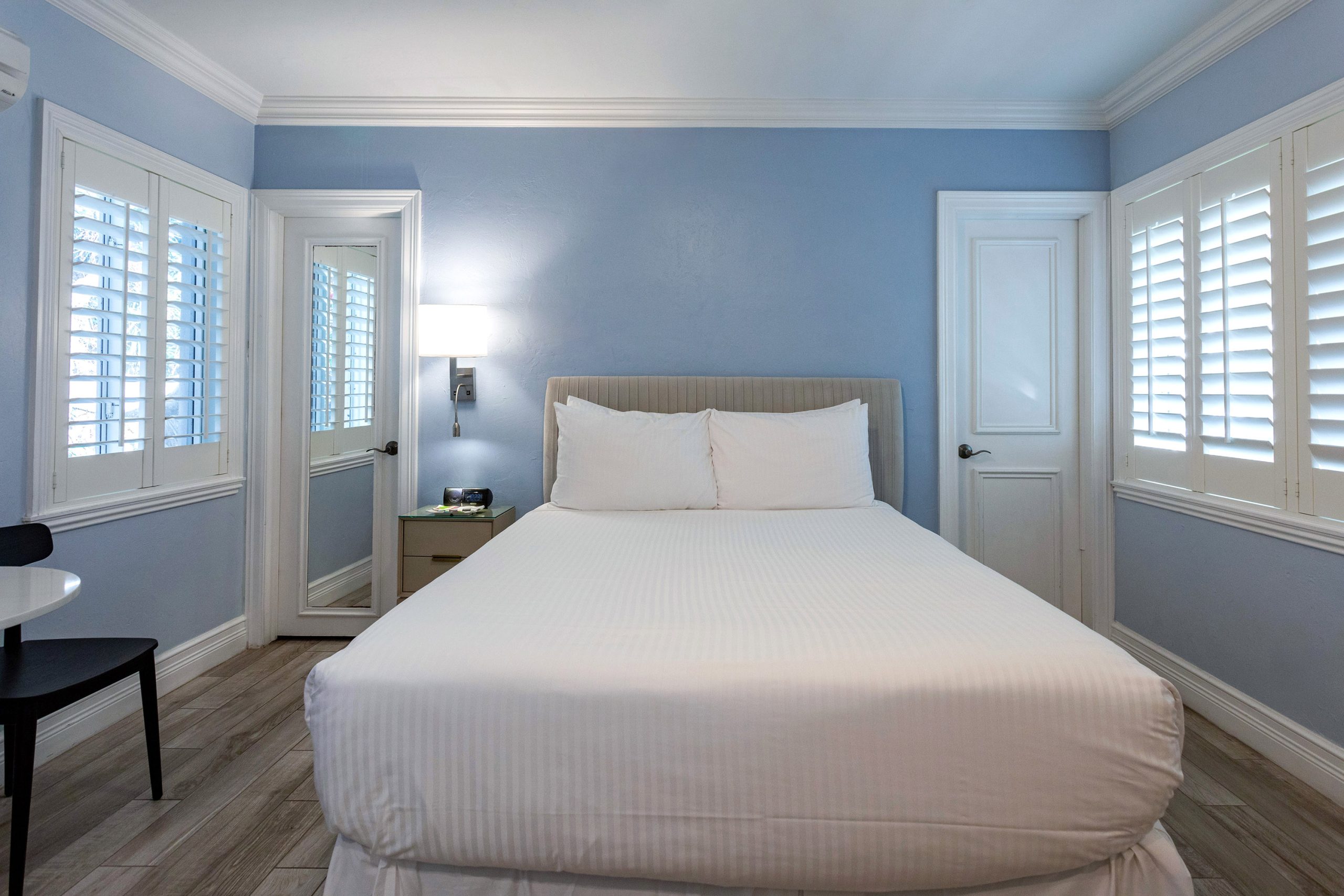 Luxury bedding, a down duvet, and custom plantation shutters invite a restful night’s sleep. We’ve even stocked the private bathroom with lush cotton bathrobes and complimentary toiletries. This room is Non-Smoking.